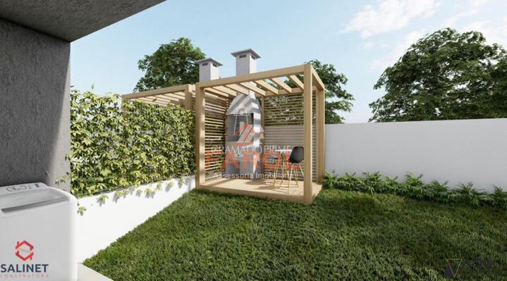 A residência conta com 1 ou 2 vagas de garagem, lazer externo com churrasqueira e pergolado.