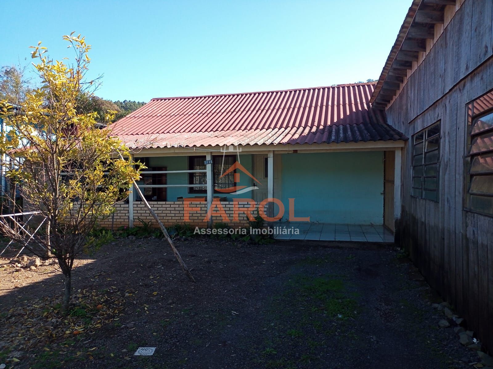 Conta com 3 quartos, com uma área grande na parte da frente, junto com um pavilhão de madeira.